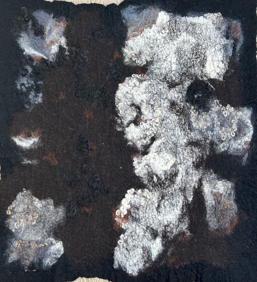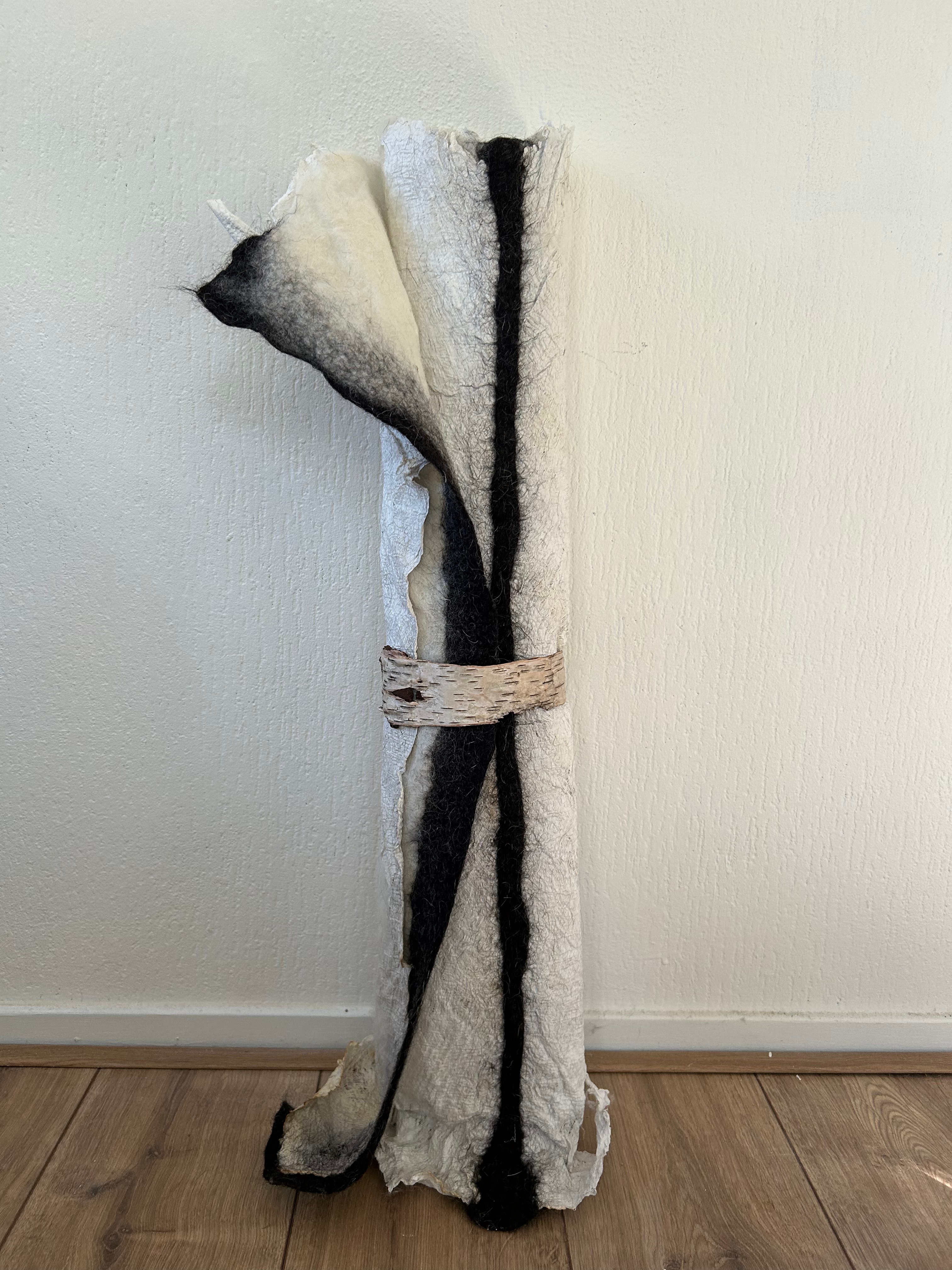Birch & Mulberry bark on Black & White merino – 2025 – 80:20cm